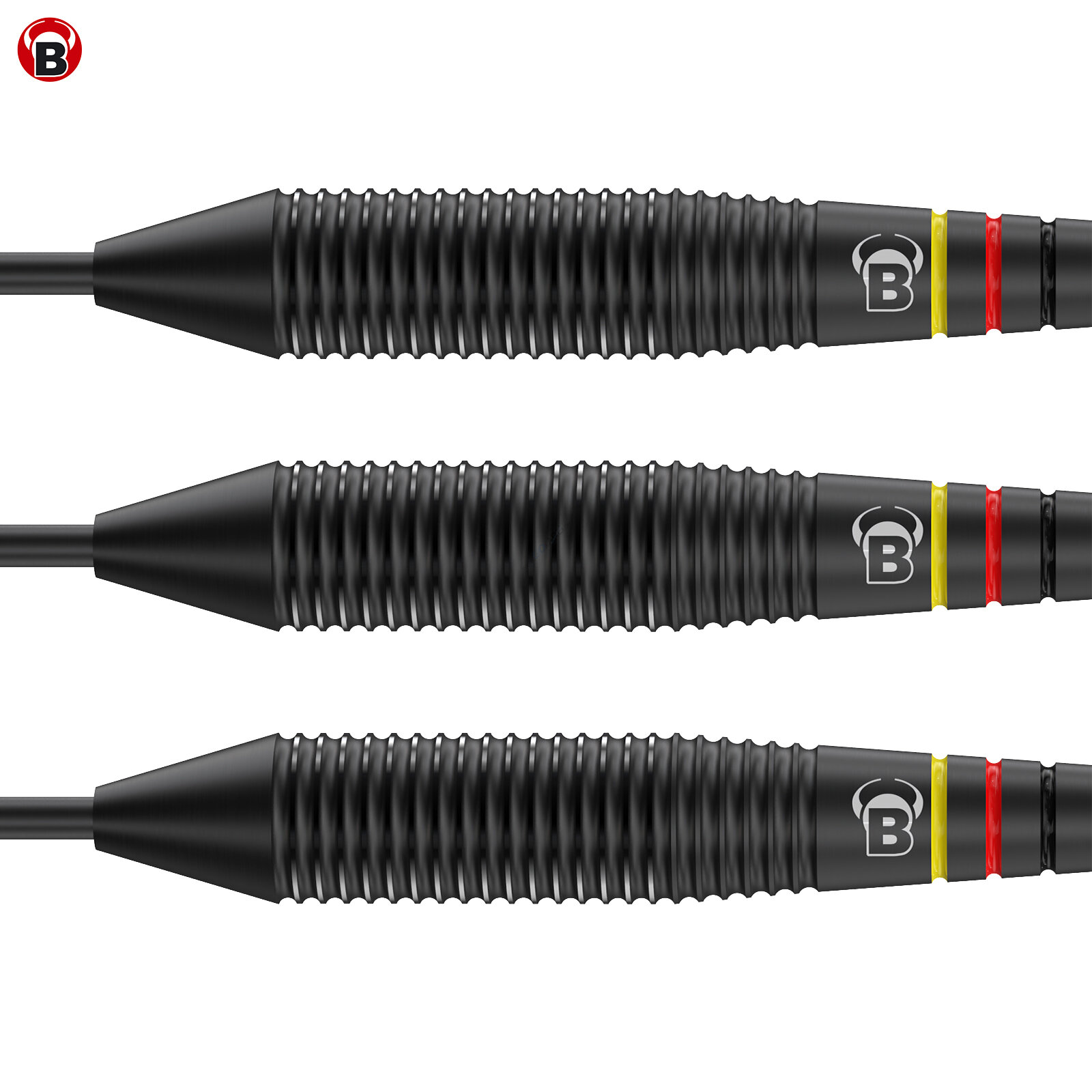- Die Barrels sind in Messing gefertigt, haben eine Gravur mit dem BULL´S Logo und farbige Ringe schwarz/rot/gold