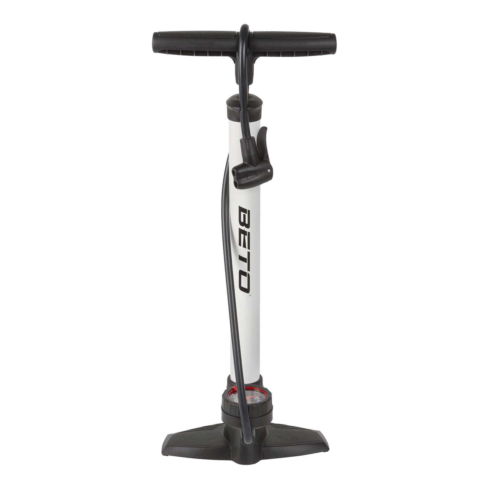 Die Hochdruck-Standpumpe "Steel" von Beto ist ein robustes Modell für Einsteiger, das trotzdem alle wesentlichen Leistungsmerkmale einer guten Standpumpe im Angebot hat: Ein leichter Lauf des Kolbens im Zylinder, der viel Leistung pro Hub bringt, gehört genauso zum Angebot der "Steel", wie ein gut ablesbares Manometer, ein stabiler Fuß für einen sicheren Stand der Pumpe, ein am Fuß verschweißter Zylinder oder ein Universal- Doppelpumpenkopf, mit dem Sie Französische-, Dunlop- oder Autoventile bedienen können.