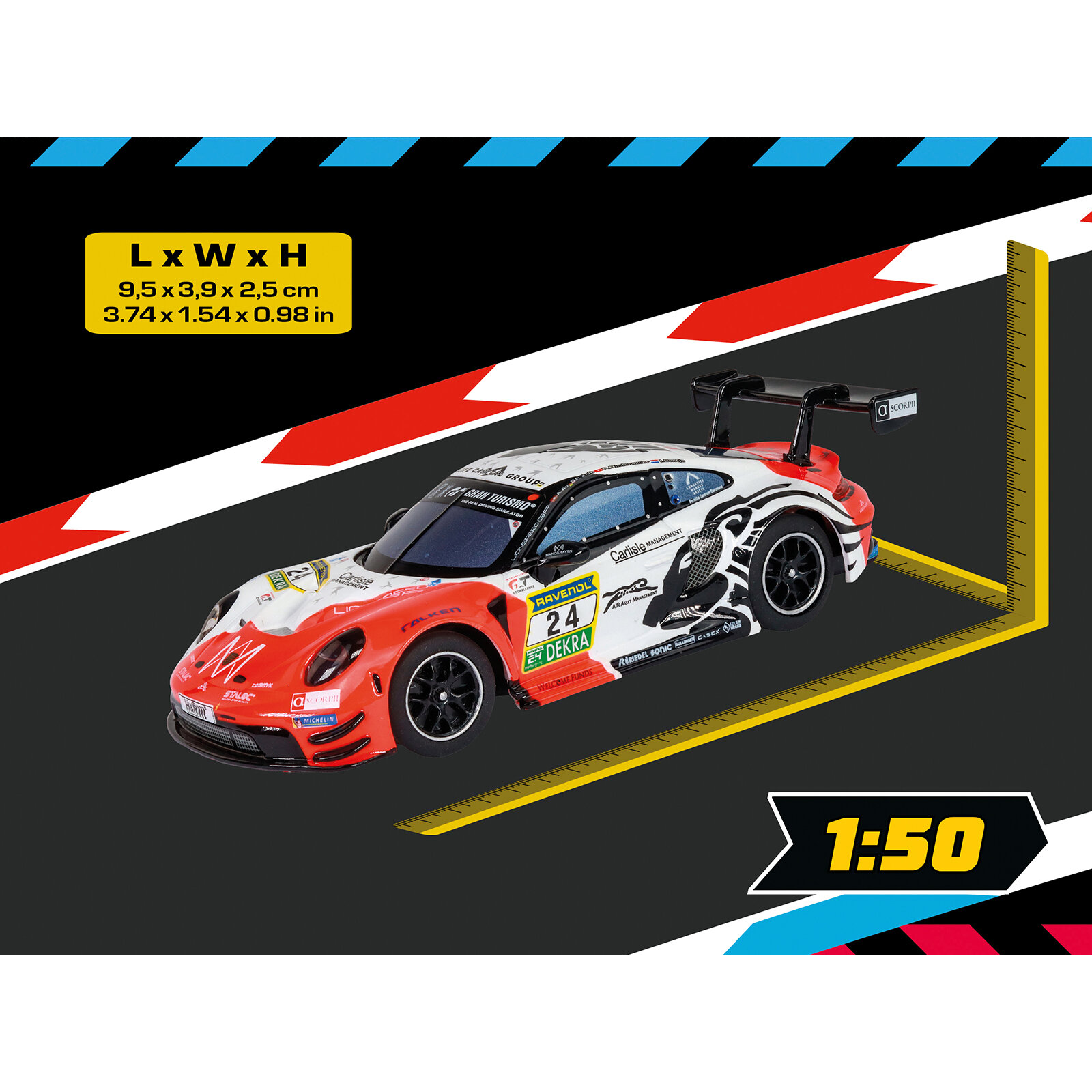 Das Fahrzeug überzeugt mit seinem originalgetreuen Look aus der beliebten GT3-Rennserie. Im Design des Lionspeed GP Teams besticht der Porsche durch sportliche Linien, detaillierte Lackierung und kraftvolle Dynamik. Der Porsche GT3 R ist inspiriert von echten Motorsport-Rennen und wurde speziell für spannende Duelle mit Freunden oder KI-Gegnern im Hybrid-Modus entwickelt. Damit ist der Wagen nicht nur ein Highlight für Carrera-Fans, sondern auch ein idealer Einstieg in die neue Generation digital gesteuerter Slotcars.