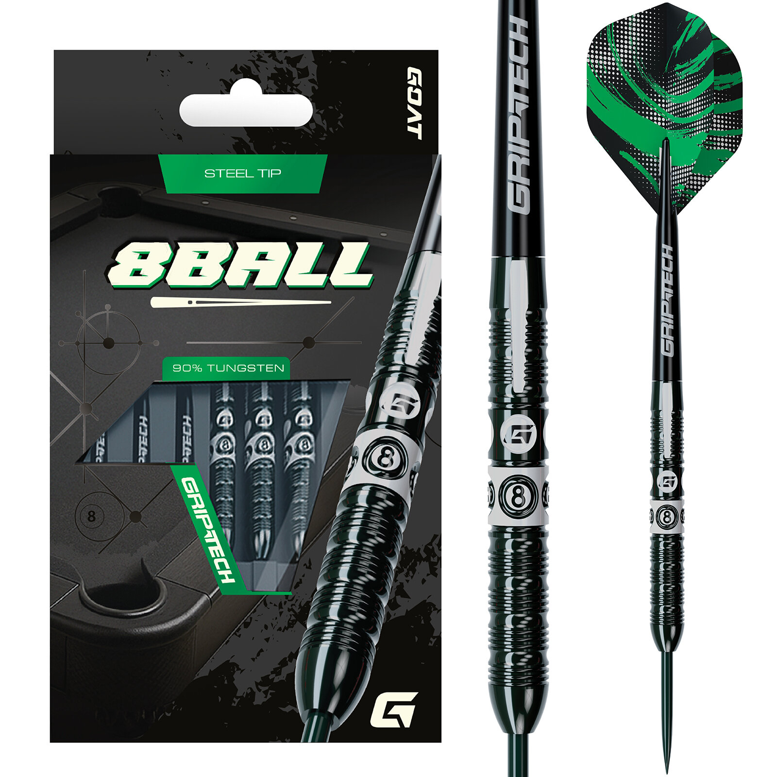 - Das neue GOAT 8Ball 90% Tungsten Barrel ist in zwei Grippzonen unterteilt, vorne breiten und schmalen Ringed Grip, mittig kleine Griffmulden, hinten breiten und schmalen Ringed Grip