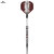 Zwischen den beiden Shark-Gripabschnitten befinden sich drei bemalte Ringe in Karminrot und Weiß (die Farben der lettischen Flagge), mit zwei weiteren bemalten Ringen auf der Rückseite, die zu einem glatten Abschnitt mit dem lasergravierten Mission-Logo führen. Razmas Dart ist komplett mit schwarzen Spitzen, weißen Mission Sabre-Schäften mit schwarzen Spitzen und seinen eigenen, charakteristischen Mission-Flights.