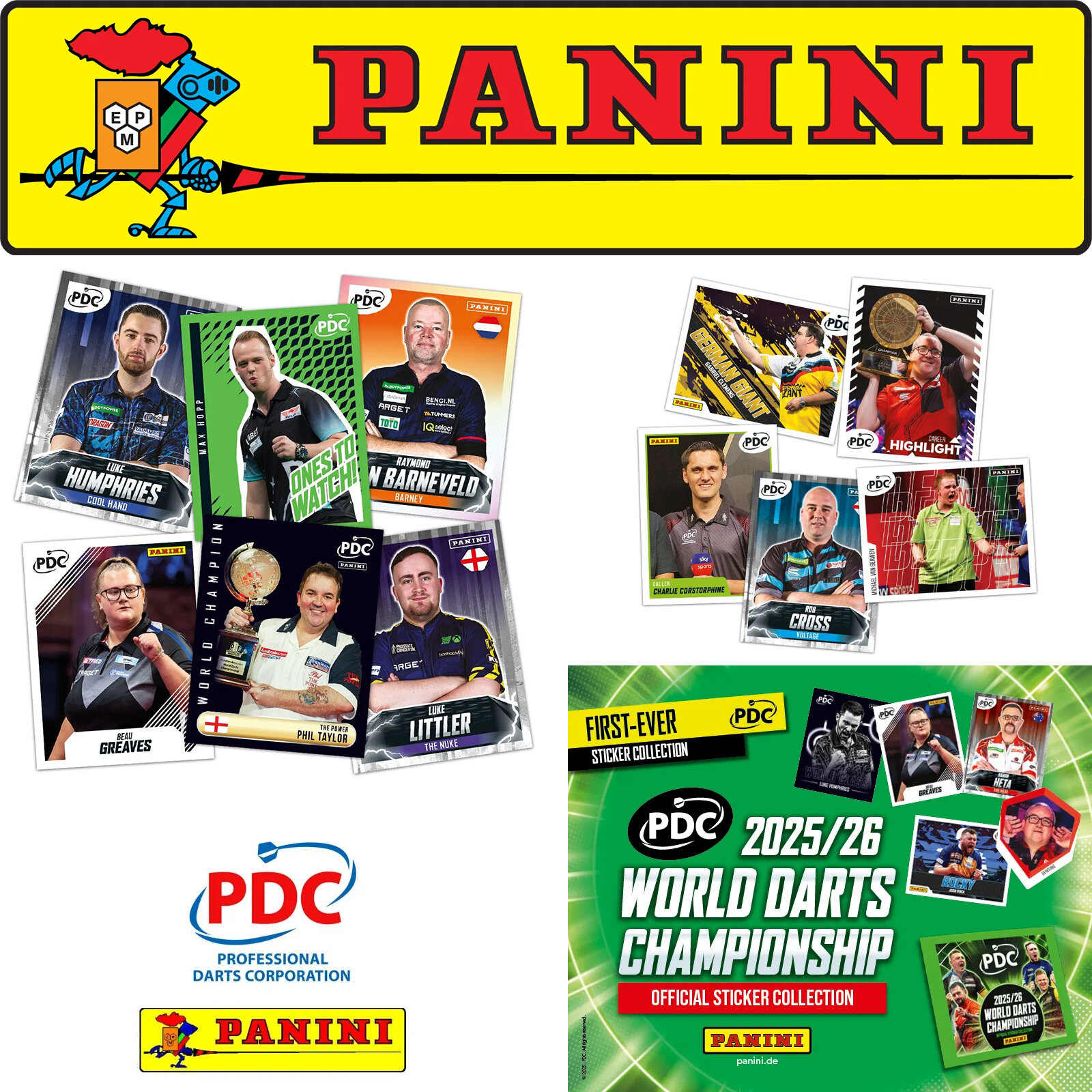 Die Panini Dart WM Sticker und das passende Sammelbilder-Album bringen die Welt des Profi-Darts direkt zu dir nach Hause. Perfekt für Fans der PDC Dart Weltmeisterschaft und alle, die ihre Lieblingsspieler sammeln, tauschen und archivieren möchten. Die Kollektion zeigt Top-Spieler, ikonische Momente und Highlights der größten Dart-Bühne der Welt. Ob für Kinder, Sammler oder echte Darts-Enthusiasten – dieses Album sorgt für langanhaltenden Sammelspaß und steigert die Vorfreude auf jede kommende WM.