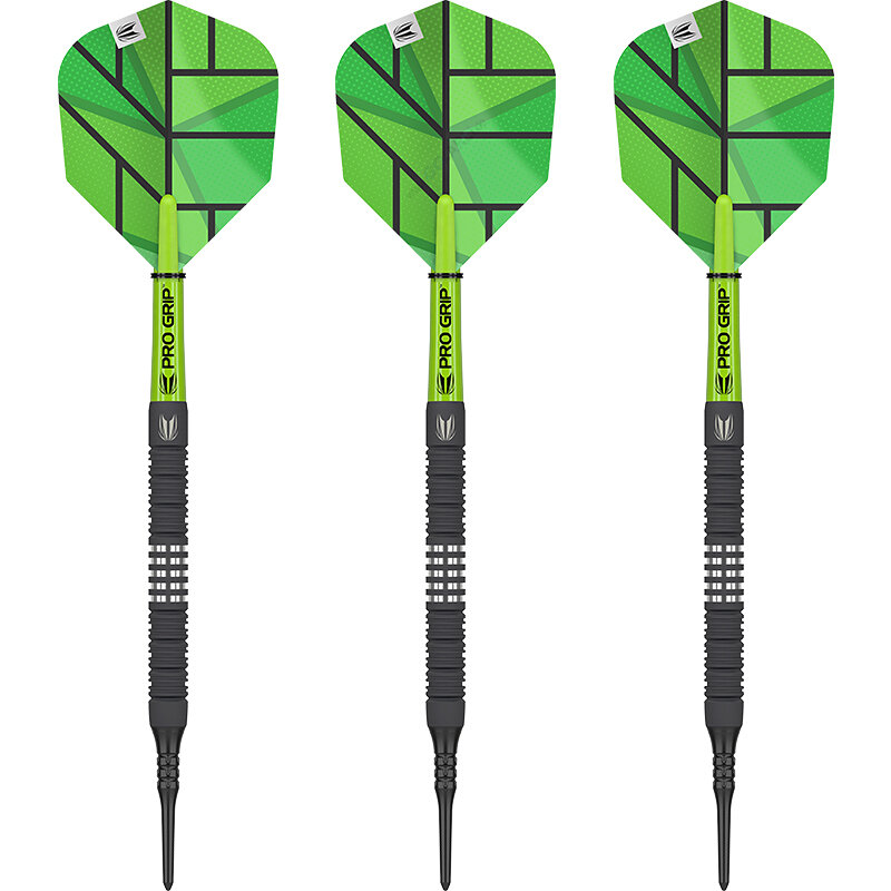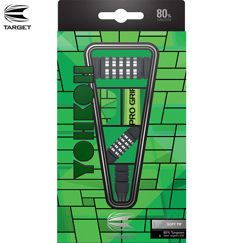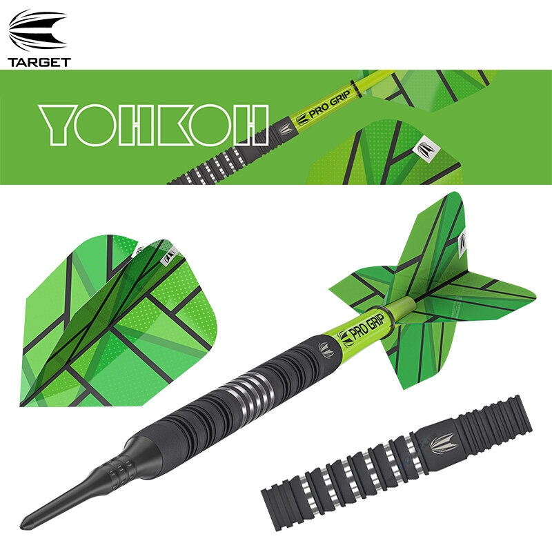 Die YOHKOH Dart Serie wird mit Target Pro Grip Shafts Short in Lime, YOHKOH PRO Ultra Signature Flights und Target Pixeltip Softdart- Spitze Schwarz vervollständigt.