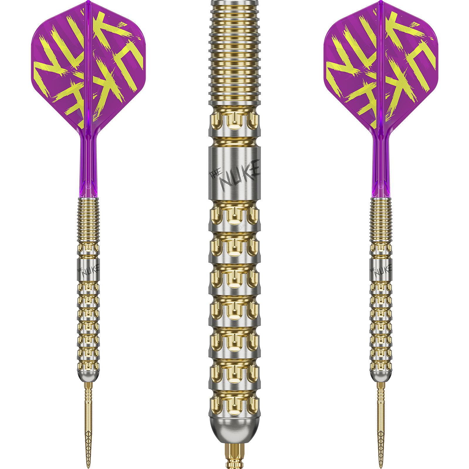 - Barrel Luke Littler Prodigy G1 90% Tungsten in Silber-Gold-Optik mit eingraviertem The Nuke Schriftzug