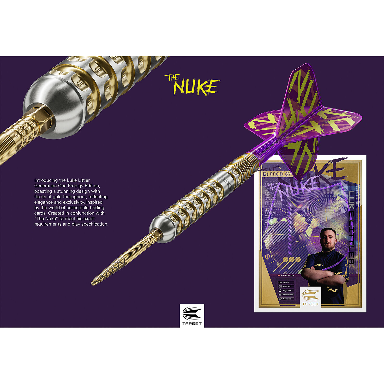 Neuer Spielerdart: "Target - Luke Littler The Nuke Brass Prodigy G1" Steeldart