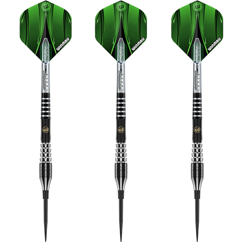Vollendet wird der neue Winmau Sniper S.E. Dart mit Prism Force Shaft mit Edelstahl Ring M Mittel Klar, Prism Alpha Standard Flights Design 2023 und Steeldart Spitzen in Schwarz.
